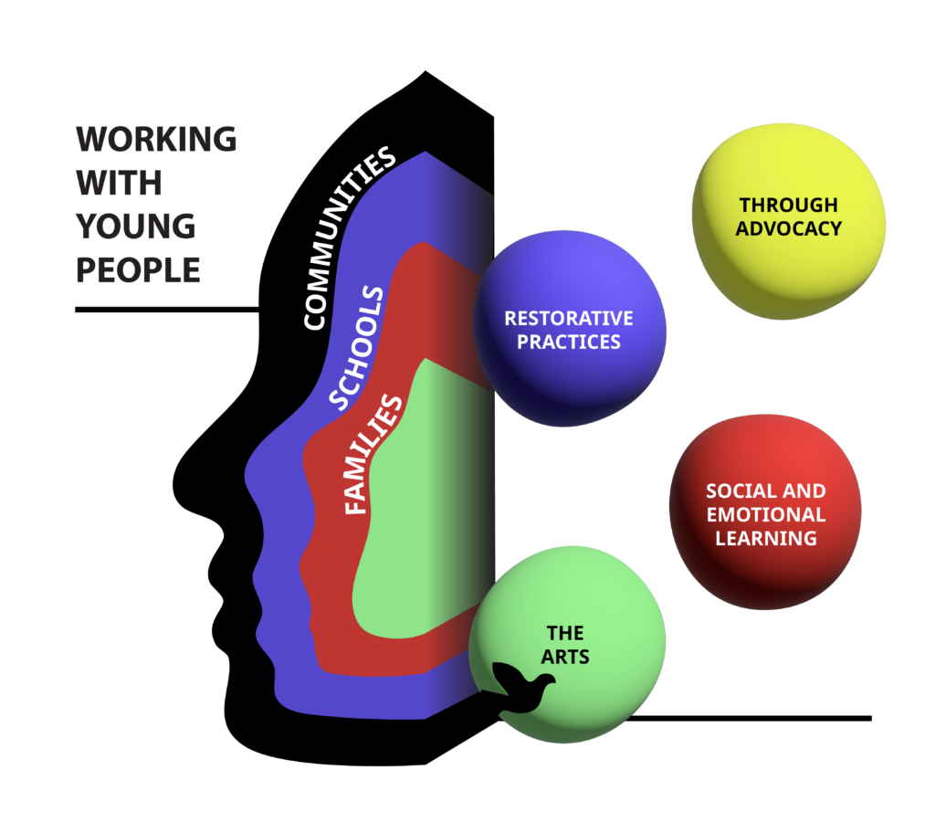 DREAM! offers youth-centered programming as well as professional development, coaching, and resources for school staff and workshops for community-based organizations (CBOs) and families. To reduce suspensions and transform learning environments, DREAM! works with young people and all of their stakeholders using a unique three-prong approach: